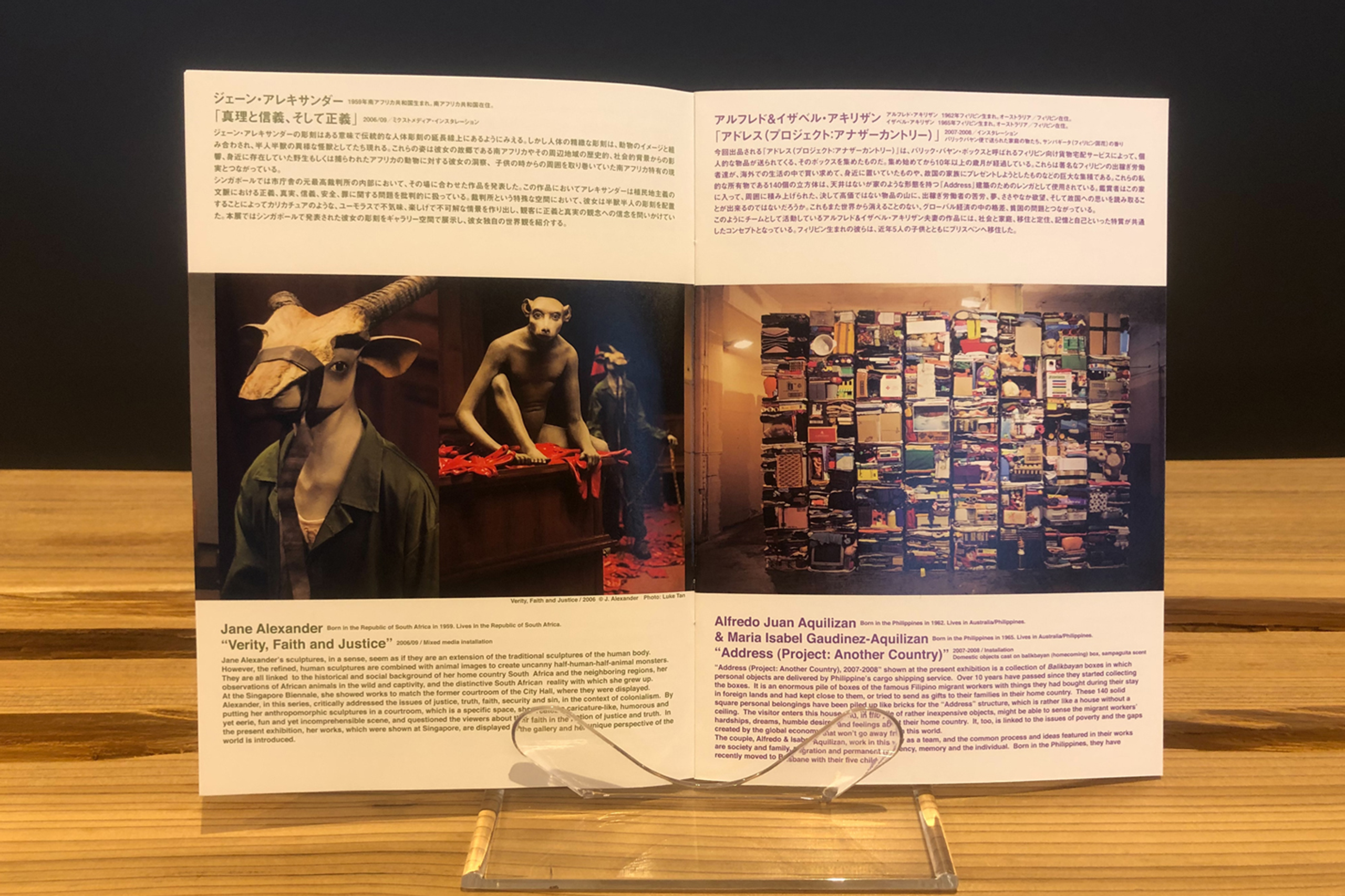 『リフレクション:アートに見る世界の今』と題し、南條史生(森美術館館長)がアートディレクターを務めたアジアにおける最大級の国際美術展「シンガポールビエンナーレ」(第1回展2006年、第2回展2008年)の出品作品の中から政治的、社会的、文化的な問題提起を行う選りすぐった作品、26点を紹介。 【参加アーティスト】 会田 誠/アルフレド&イサベル・アキリザン/アクタン・アブディカリコフ/ジェーン・アレキサンダー/イー ラン・イー/トマス・オチョア/ホセイン・ゴルバ/シュー・ビン/スーハ・ショーマン/ ツェ・スーメイ/レオニド・ティシコフ/ドリック・ピクチャー・ライブラリー/チャーリー・ニジンソ ン/福田 龍郎/セルジオ・プレゴ/イサック・ベルビック/ツーニェン・ホー/松蔭 浩之/ファハド・モシリ&シリン・アリアバディ/フリオ・セサール・モラレス/アイザック・モントーヤ/クレア・ランガン/ディン・Q・リー/リー・キーボン/クリスティナ・ルーカス/ジョシュア・ヤン